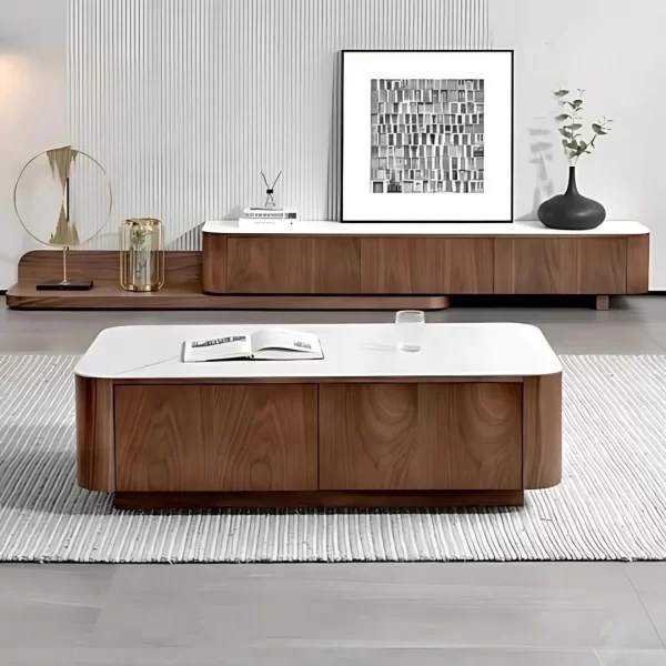 ADONIA WOOD & SINTERED STONE TOP COFFEE TABLE: A Modern Fusion of Style and Durability