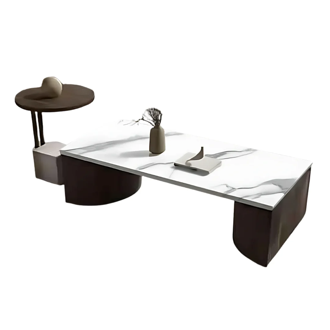 Initially, this impressive modern marble coffee table presents a commanding presence. The main table measures L120 cm x W60 cm x H30 cm, while the accompanying side table is 40 x 50 cm. This ensures a prominent yet space-efficient addition to your home. Furthermore, the smooth marble surface is inherently easy to clean and maintain. This makes it ideal for high-traffic areas. Crucially, the elegant walnut and white design blends effortlessly with various decor palettes. Thus, this walnut coffee table (as related) is perfect for holding drinks, books, or decorative items. Therefore, the Alina is a standout piece, representing a veneered wood coffee table that elevates any space. Ultimately, it adds a touch of modern elegance and captivating allure to any setting.