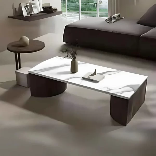 • Luxurious Marble Top: Primarily, it showcases a distinctive marble coffee table design, with a pristine white marble surface. This, consequently, perfectly complements contemporary and minimalist aesthetics.