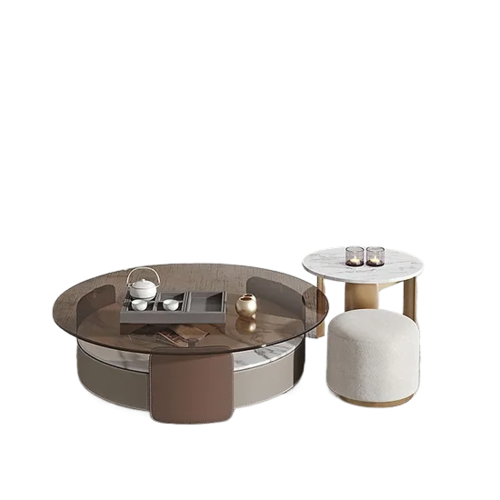 The Anna Round Glass Top Coffee Tables set includes three beautifully designed tables, perfect for adding a touch of sophistication to any living space. The light grey and brown color palette complements various interior styles, from modern to contemporary.