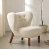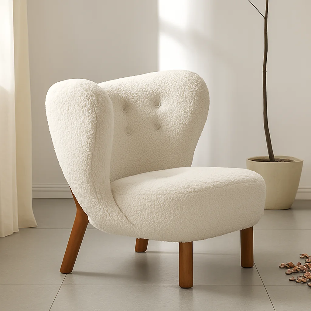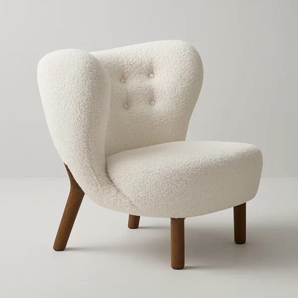 • Luxurious White Sherpa Fabric: Primarily, it showcases soft white Sherpa fabric upholstery. This, consequently, perfectly complements contemporary and cozy modern aesthetics.