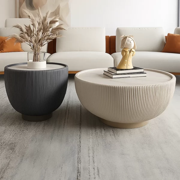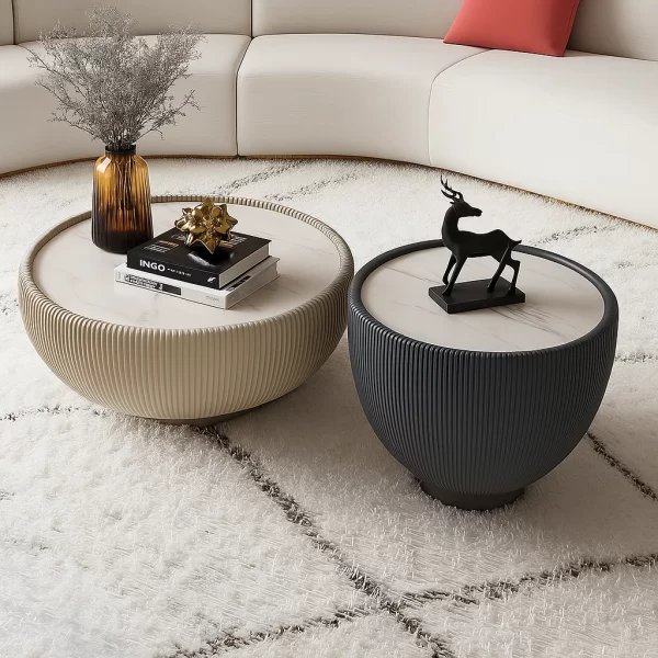 The Claret Beige Grey Coffee Table offers a truly exquisite blend of modern design and versatile functionality. Indeed, this sophisticated nested set dramatically enhances any contemporary living room. Its larger table, meanwhile, measures 70 x 70 x 36 cm, perfectly complementing a smaller 45 x 45 x 47 cm table. Both pieces feature luxurious sintered stone tops with refined finishes, beautifully accented by durable faux leather details. Consequently, this beige grey coffee table set acts as a magnificent centerpiece. Moreover, it seamlessly merges refined design with exceptional adaptability.