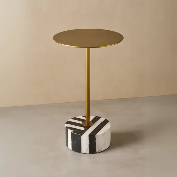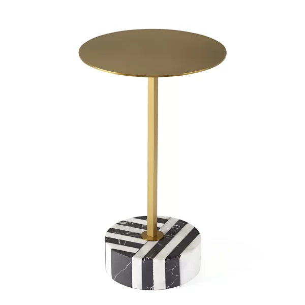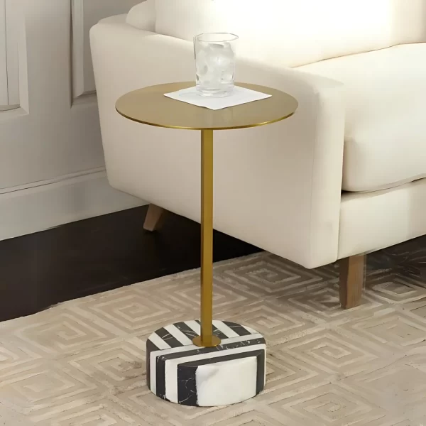The Clarita Gold Marble Side Table offers a truly exquisite blend of modern design and robust luxury. Indeed, this sophisticated piece dramatically enhances any contemporary living room, bedroom, or lounge area. Its luxurious top, meanwhile, is crafted from gold stainless steel, boasting a radiant gold finish. This beautifully rests upon a sturdy gold metal pole, anchored by a robust marble base. Consequently, this gold marble side table acts as a magnificent accent piece. Moreover, it seamlessly merges refined aesthetics with practical utility.
