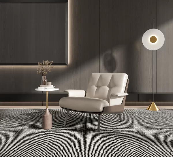 Initially, this impressive modern beige leisure chair presents a commanding presence. It measures W85 cm x D88 cm x H90 cm. This ensures ample seating space. Furthermore, the high-density (HD) sponge padding (inferred) guarantees superior comfort and shape retention. Crucially, the durable plywood frame provides long-lasting stability, while sleek steel legs add a contemporary touch. Thus, this steel leg leisure chair beige is perfect for unwinding after a long day or engaging in conversation. Therefore, the Clora is a standout comfortable faux leather chair. Ultimately, it adds a touch of captivating style and practical elegance to any setting.