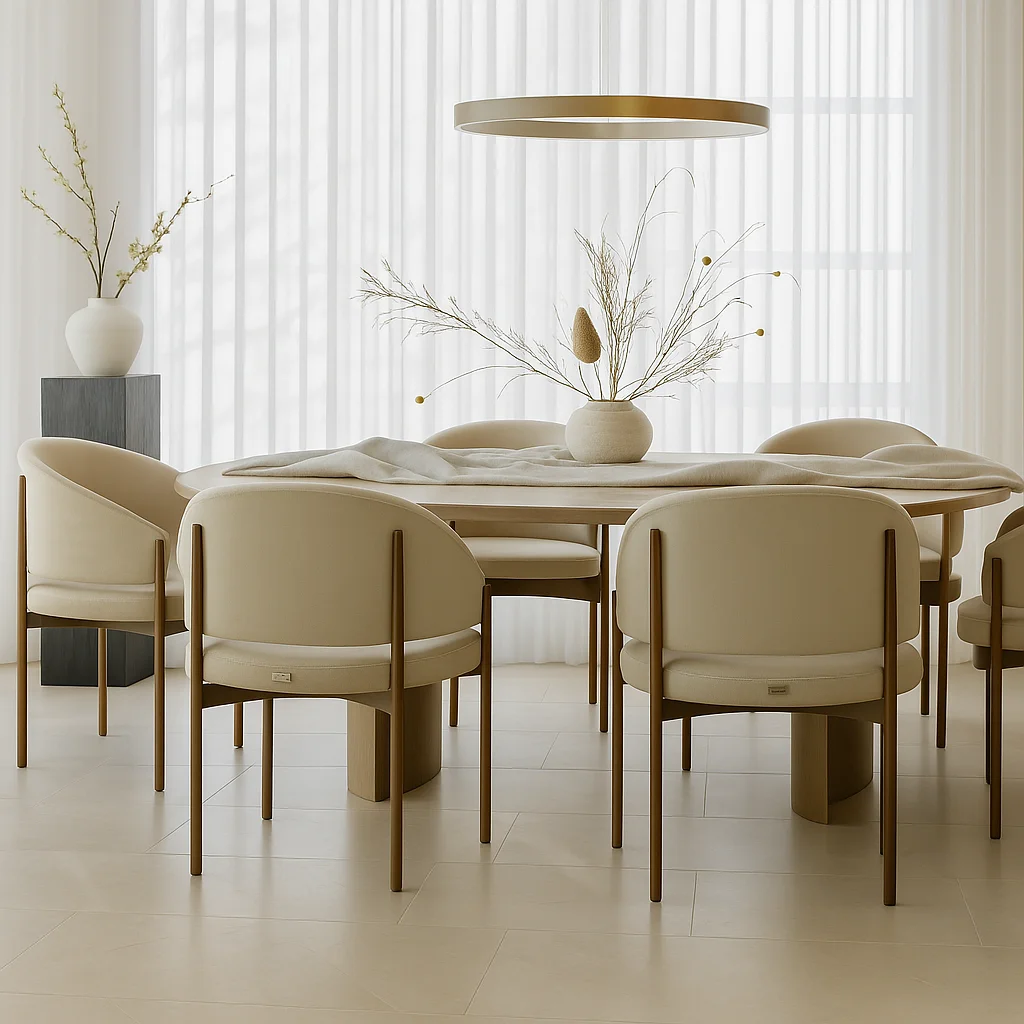 The Elima is, without doubt, an outstanding Beige Dining Chair. In essence, it suits anyone seeking contemporary design, luxurious materials, and a captivating, functional seating solution for their home. To conclude, explore our full range of modern furniture. Discover more pieces that blend functionality and sophisticated style at Majestic Home UAE.