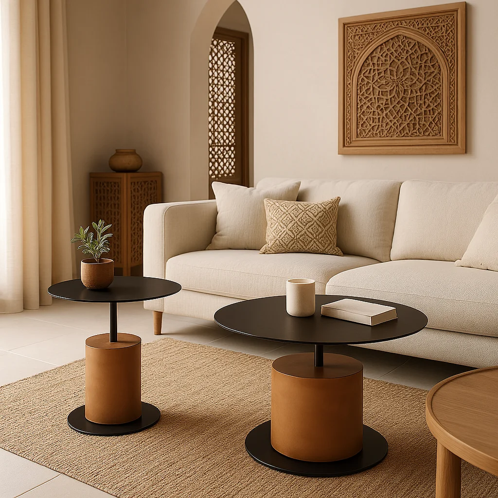 • Versatile Nested Design: Notably, it includes two tables (Dia 60xH40 cm & Dia 40xH50 cm). This, crucially, offers flexible arrangement options.