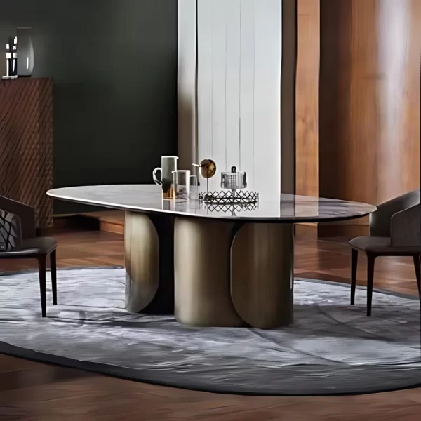 The Essence Dining Tables, measuring 2200 x 1000 x 75 cm, is a perfect blend of luxury and functionality. With a stunning white sintered stone top and a gold stainless steel base, this table adds sophistication to any dining space. Its refined design makes it ideal for formal dining rooms, meal settings, breakfast areas, or as the centerpiece of open-plan living spaces. Whether hosting a dinner party or enjoying family meals, the Essence Dining Table is sure to elevate your dining experience.