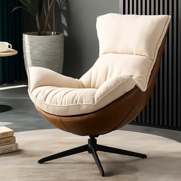 The Kalina Faux Leather Lounge Chair offers a truly exquisite blend of modern design and unparalleled comfort. Indeed, this sophisticated armchair dramatically enhances any contemporary living room, media room, or spacious bedroom. Its plush upholstery, meanwhile, is crafted from durable faux leather, boasting an elegant beige + brown color scheme. This beautifully rests upon sleek metal legs. Crucially, it features sumptuously soft feather filling for superior softness and support. Consequently, this faux leather lounge chair acts as a magnificent centerpiece. Moreover, it seamlessly merges refined aesthetics with exceptional relaxation.