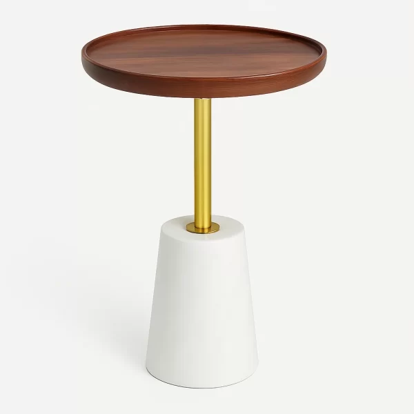 Initially, this impressive modern walnut side table gold presents a compact presence. It measures Dia 40 cm x H54 cm. This ensures a prominent yet space-efficient addition to your home. Furthermore, the durable solid wood top and natural marble base guarantee lasting beauty and a timeless appeal. Crucially, the elegant gold metal pole adds a touch of sophistication and unique visual interest. Thus, this marble base side table is perfect for holding drinks, books, or decorative items. Therefore, the Loony is a standout solid wood gold table. Ultimately, it adds a touch of captivating style and functional elegance to any setting.