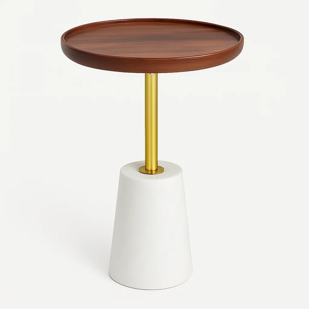 The Loony Walnut Gold Side Table offers a truly exquisite blend of modern design and robust luxury. Indeed, this sophisticated piece dramatically enhances any contemporary living room, bedroom, or lounge area. Its luxurious top, meanwhile, is crafted from genuine solid wood, boasting a rich walnut finish. This beautifully complements a sturdy natural white marble base and a striking gold metal pole. Consequently, this walnut gold side table acts as a magnificent accent piece. Moreover, it seamlessly merges refined aesthetics with practical utility.