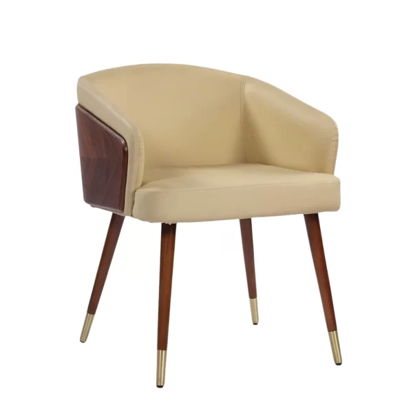 • Mixed Material Upholstery: Notably, it blends beige faux leather (inner) with a veneered wooden outer back. This offers unique visual appeal.
