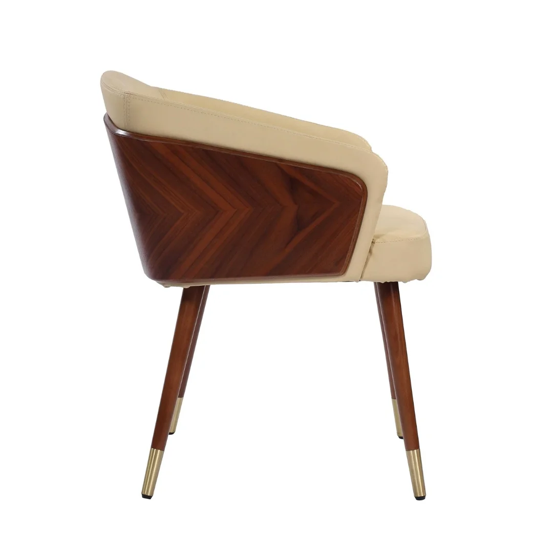 • Mixed Material Upholstery: Notably, it blends beige faux leather (inner) with a veneered wooden outer back. This offers unique visual appeal.