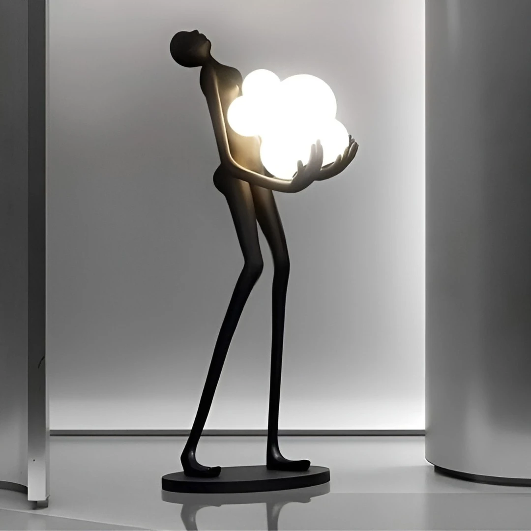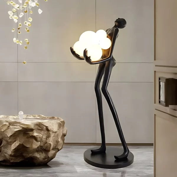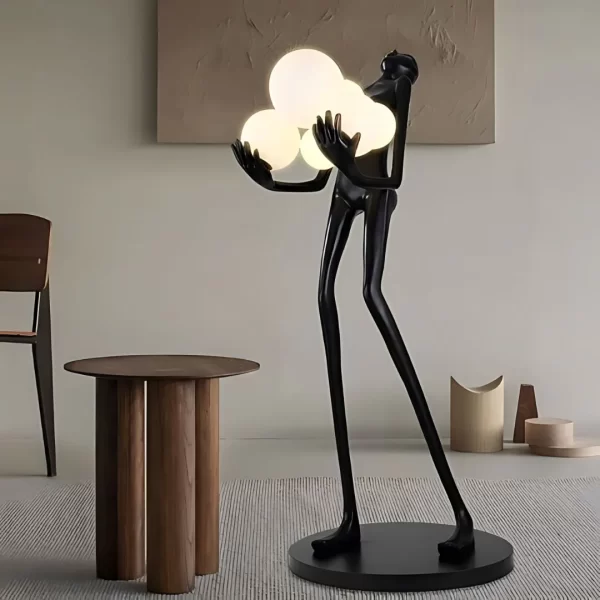 Crafted from steel, the lamp features a unique black figurine design that adds an artistic and sophisticated touch to any room. Whether you’re lighting up a cozy reading nook, enhancing your living room ambiance, or making a bold statement in a hallway, this floor lamp is perfect for any setting.