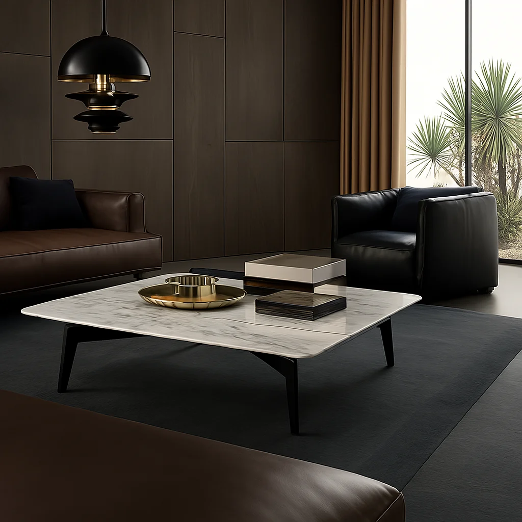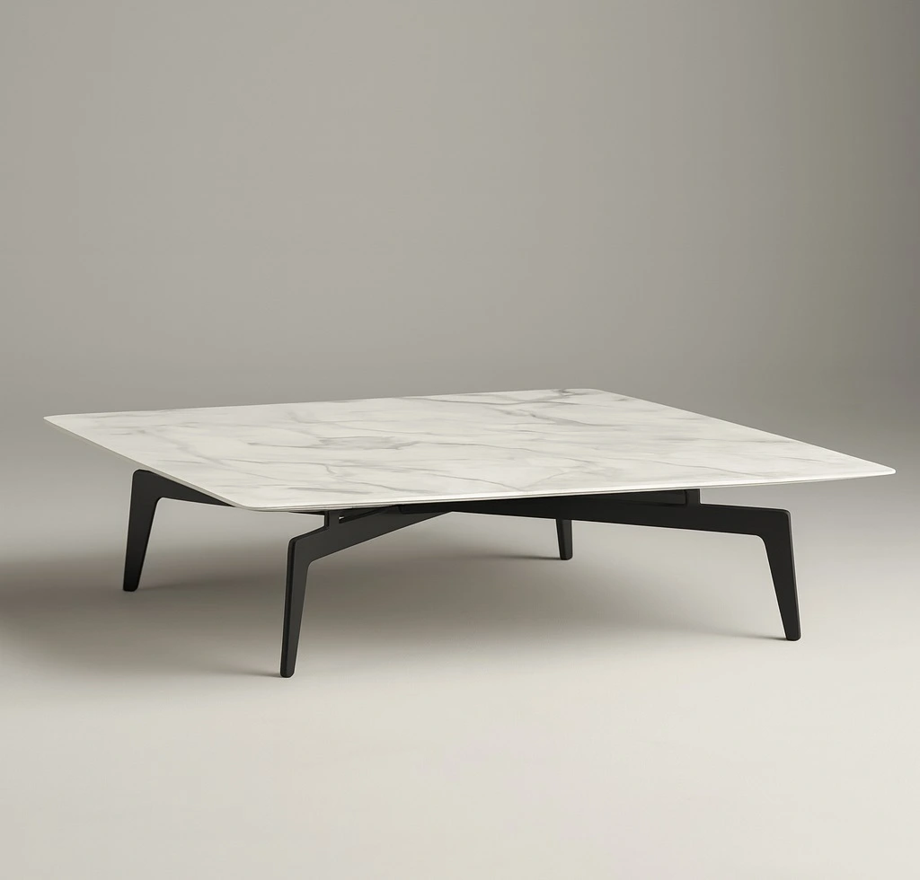 The Rano Square Coffee Table offers a truly exquisite blend of modern design and robust functionality. Indeed, this sophisticated piece dramatically enhances any contemporary living room or lounge area. Its sleek top, meanwhile, is crafted from durable sintered stone, boasting a pristine white finish and unique natural veining. This beautifully rests upon a sturdy black metal frame that is powder coated. Consequently, this square coffee table acts as a magnificent centerpiece. Moreover, it seamlessly merges refined aesthetics with versatile utility.
