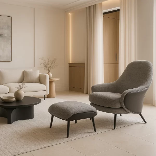 The Rina is, without doubt, an outstanding Grey Lounge Chair Ottoman. In essence, it suits anyone seeking contemporary design, luxurious materials, and a captivating, functional seating solution. To conclude, explore our full range of modern furniture. Discover more pieces that blend functionality and sophisticated style at Majestic Home UAE.