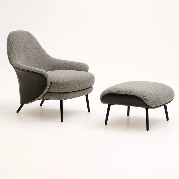The Rina Grey Lounge Chair Ottoman offers a truly exquisite blend of modern design and unparalleled comfort. Indeed, this sophisticated seating set dramatically enhances any contemporary living room, media room, or spacious bedroom. Its plush upholstery, meanwhile, is crafted from durable grey faux leather and soft linen fabric, providing an inviting texture and elegant aesthetic. This beautifully rests upon sleek steel legs. Crucially, it includes a matching ottoman for elevated relaxation. Consequently, this grey lounge chair ottoman acts as a magnificent centerpiece. Moreover, it seamlessly merges refined aesthetics with exceptional comfort.