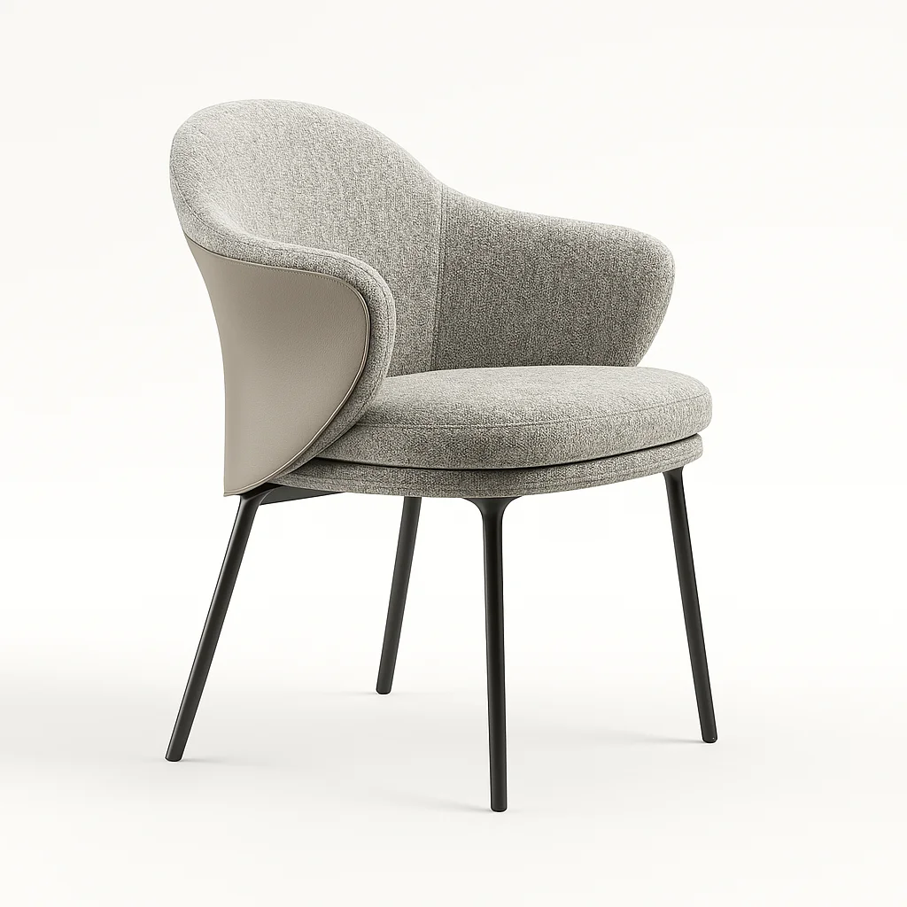 The Rona Leather Dining Chair offers a truly exquisite blend of modern design and sophisticated comfort. Indeed, this versatile seating piece dramatically enhances any contemporary dining area. Its unique upholstery, meanwhile, features durable grey faux leather on the outer back and handles, complemented by soft fabric on the inner back and seat. This beautifully rests upon sturdy steel base legs. Consequently, this leather dining chair acts as a magnificent statement piece. Moreover, it seamlessly merges refined aesthetics with exceptional comfort.