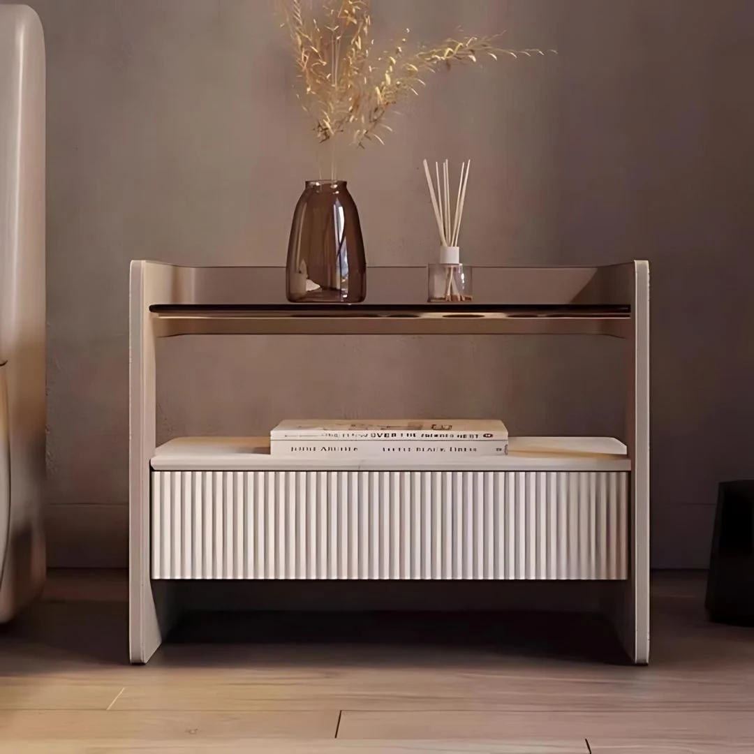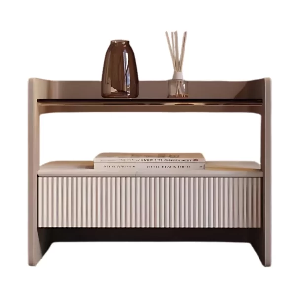 The Sancia Modern Beige Nightstand offers a truly exquisite blend of contemporary design and practical elegance. Indeed, this sophisticated piece dramatically enhances any modern bedroom or guest room. Its durable top, meanwhile, is crafted from sleek tempered glass. This beautifully integrates with a warm veneered wood frame and subtle faux leather accents, all in a soothing beige color. Consequently, this modern beige nightstand acts as a magnificent accent piece. Moreover, it seamlessly merges refined aesthetics with essential bedside functionality.