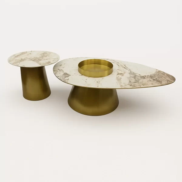 • Luxurious Sintered Stone Top: Primarily, it showcases a distinctive white sintered stone coffee table design, with a pristine white sintered stone surface. This, consequently, perfectly complements contemporary and minimalist aesthetics.