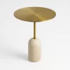The Solon Gold Beige Side Table offers a truly exquisite blend of modern design and robust luxury. Indeed, this sophisticated piece dramatically enhances any contemporary living room, bedroom, or lounge area. Its sleek top and frame, meanwhile, are expertly crafted from metal, boasting a radiant gold finish. This beautifully rests upon a sturdy travertine stone base, featuring warm beige tones. Consequently, this gold beige side table acts as a magnificent accent piece. Moreover, it seamlessly merges refined aesthetics with practical utility.