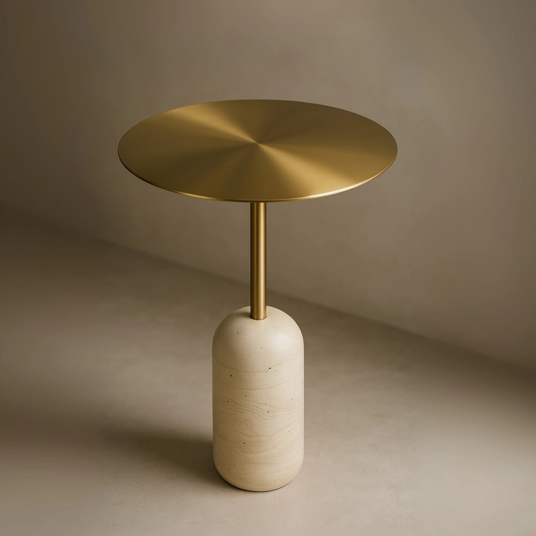The Solon Gold Beige Side Table offers a truly exquisite blend of modern design and robust luxury. Indeed, this sophisticated piece dramatically enhances any contemporary living room, bedroom, or lounge area. Its sleek top and frame, meanwhile, are expertly crafted from metal, boasting a radiant gold finish. This beautifully rests upon a sturdy travertine stone base, featuring warm beige tones. Consequently, this gold beige side table acts as a magnificent accent piece. Moreover, it seamlessly merges refined aesthetics with practical utility.