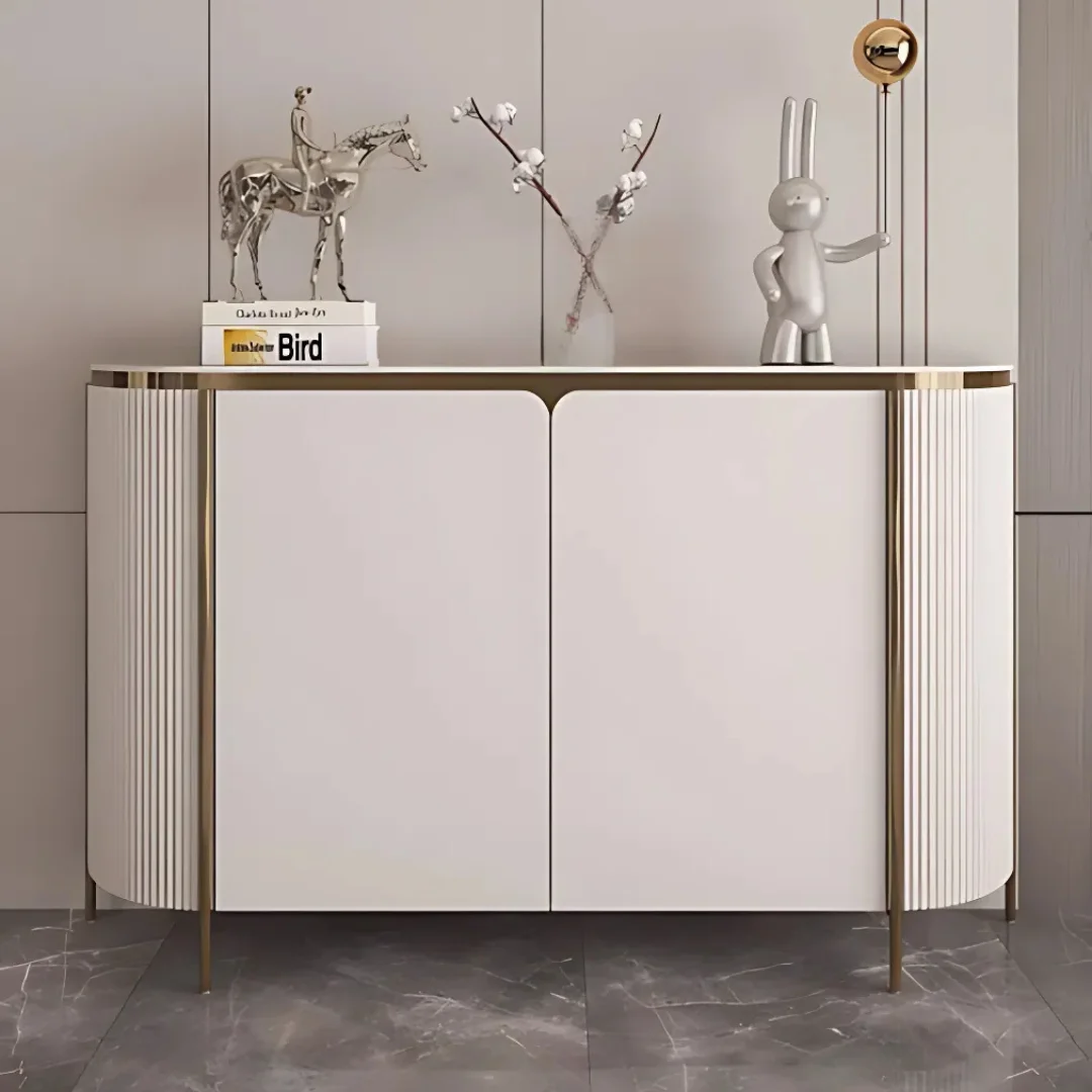 The TALINA White Wood Buffet Cabinet combines modern elegance with practical storage. Measuring 160 x 40 x 90 cm, it features a durable sintered stone top, sleek metal legs, and a sophisticated white finish. Perfect as a sideboard, buffet cabinet, side cabinet, or chest drawer, it enhances any living room, dining room, or hallway with its stylish design and functionality. Ideal for storing essentials while complementing both contemporary and classic interiors.