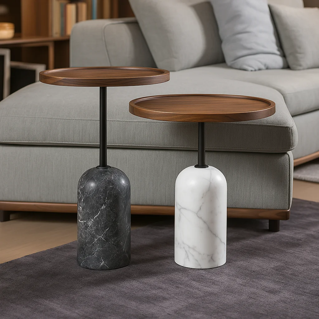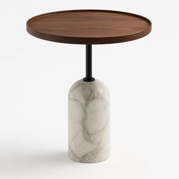 The Talon Walnut Marble Side Table offers a truly exquisite blend of modern design and natural elegance. Indeed, this sophisticated piece dramatically enhances any contemporary living room, bedroom, or lounge area. Its luxurious top, meanwhile, is crafted from rich walnut-finished wood. This beautifully rests upon a sturdy white marble base. Consequently, this walnut marble side table acts as a magnificent accent piece. Moreover, it seamlessly merges refined aesthetics with practical utility.