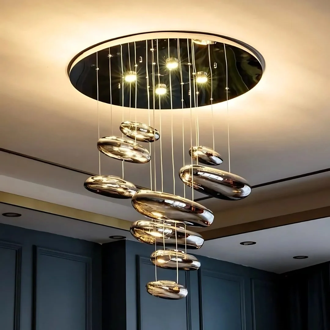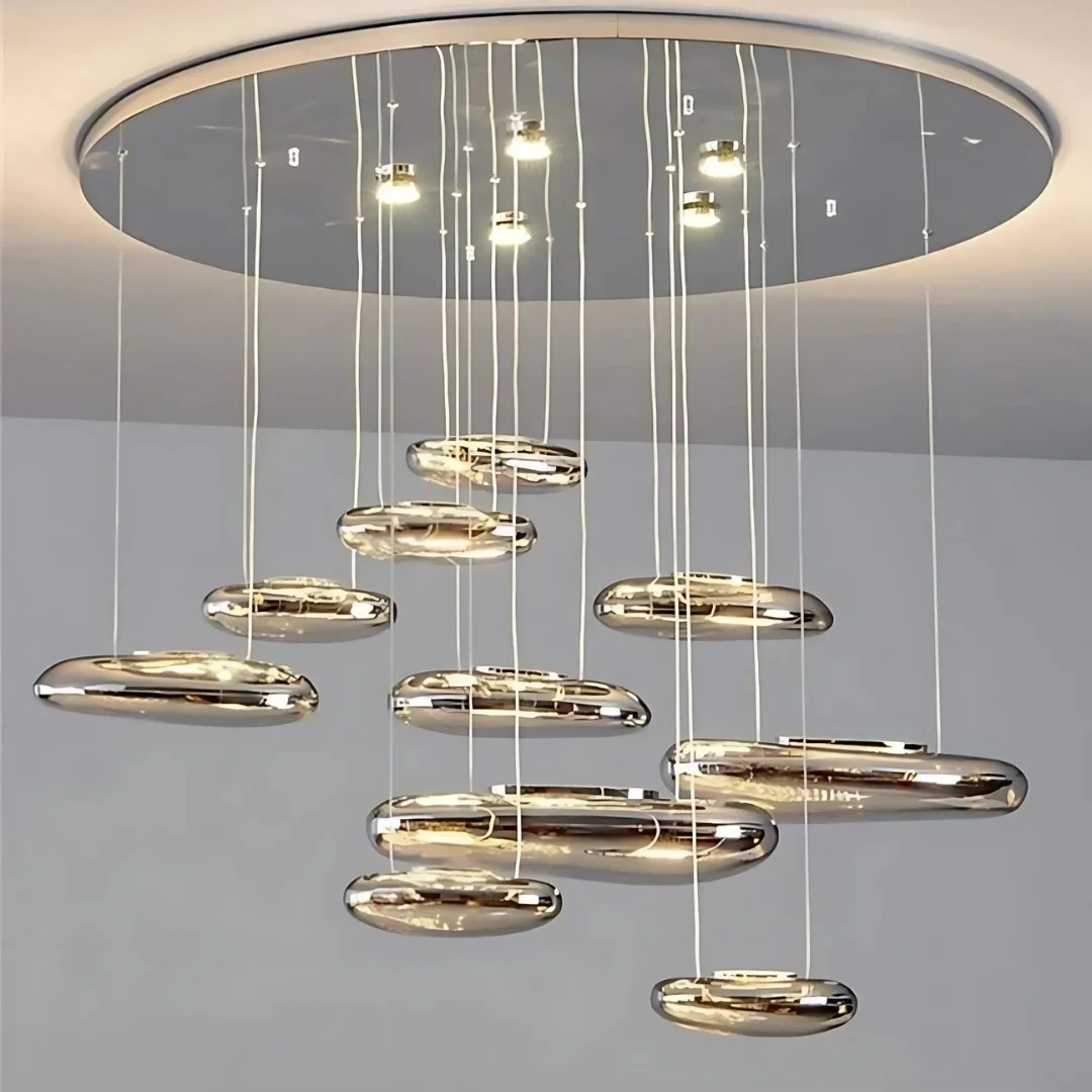 The VALI Ceiling Light features a sophisticated chrome stainless steel frame with glass accents, measuring D110 cm. Perfect for modern living rooms, bedrooms, or halls, this elegant light enhances any space with its stylish and sleek design. Ideal for contemporary interiors, it offers both luxury and functionality while illuminating your home with soft, ambient lighting.
